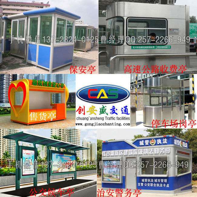 生產公交候車亭,崗亭,保安亭,高速公路收費亭,治安警務亭,售貨亭,手動欄桿機,報刊亭,公交站臺,交通安全勸導站,移動廁所,義工亭定做熱線137-2824-0125(微信同號)曹經理QQ:257-2266-949急單請加撥132-6881-4669東莞創(chuàng)安盛交通溫馨提示:本產品屬于非標定做產品,價格依據圖紙核算,如需準確的報價或者預算,請撥打電話直接咨詢。感謝大家的關注與合作!期待為大家?guī)砀唷⒏鼉?yōu)質的產品、更完善的服務!如需產品樣式選型,請參考工廠網站。溫馨提示:由于本公司所有產品均由規(guī)格、配置、款式計算價格,所以一律無法在線成交,準確的價格請直接來電或者在線咨詢QQ。您要的“性價比高、優(yōu)質、工期及時、全國年保、專業(yè)、周全、工藝精美”一直是我們的標準。注意:站崗亭為非標定做產品,在線無法訂購,需要與廠家溝通好“款式,規(guī)格、配置、運輸”等等方能下單。請勿直接拍。感謝關注,合作,謝謝!