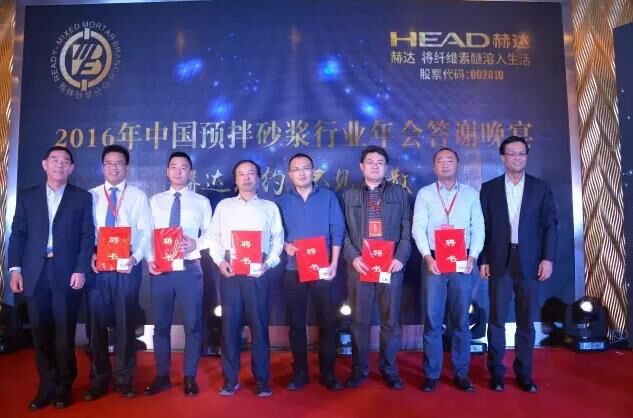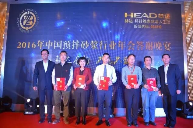 11月10日晚,由山東赫達(dá)股份有限公司承辦的“2016中國(guó)預(yù)拌砂漿行業(yè)年會(huì)答謝晚宴——赫達(dá)有約 不見(jiàn)不散”在科技感十足的《時(shí)空之夢(mèng)》舞蹈下正式拉開(kāi)帷幕。分會(huì)理事長(zhǎng)王肇嘉、山東赫達(dá)股份有限公司研發(fā)總監(jiān)李玉海分別代表主辦方和承辦方致辭。隨后,伴隨著悠揚(yáng)的樂(lè)曲及精彩熱烈的抽獎(jiǎng),中國(guó)預(yù)拌砂漿行業(yè)各領(lǐng)域精英再度聚首,共同為預(yù)拌砂漿事業(yè)舉杯歡慶,祝愿共同愿砂漿大業(yè)永遠(yuǎn)興旺蓬勃。晚宴同時(shí)還為2016年度中國(guó)預(yù)拌砂漿行業(yè)評(píng)比表彰中獲得優(yōu)秀通訊員的個(gè)人進(jìn)行了頒獎(jiǎng),并為預(yù)拌砂漿分會(huì)新任專家頒發(fā)了聘書。