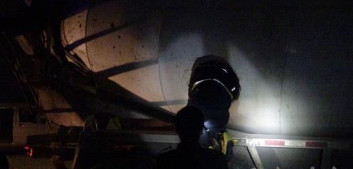 到場后,救援人員進入混凝土攪拌車車窯發(fā)現(xiàn),被困男子卡在兩條攪拌機切割條的槽內(nèi),只有半條腿露在外面,人已不幸死亡。