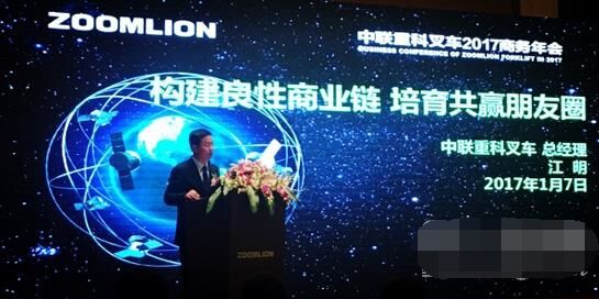 當(dāng)日,江明總經(jīng)理在大會(huì)上表示,中聯(lián)重科工業(yè)車輛已經(jīng)搭建了良好的商業(yè)生態(tài)鏈,并建立了以“誠信、共贏、協(xié)同、競(jìng)爭(zhēng)”為商業(yè)觀的朋友圈。2017年中聯(lián)叉車的經(jīng)營定位是:進(jìn)一步夯實(shí)產(chǎn)品、渠道基礎(chǔ)。注重規(guī)模與效益之間的平衡,強(qiáng)化商業(yè)鏈的良性運(yùn)營。國內(nèi)市場(chǎng)在風(fēng)險(xiǎn)可控的前提下,注重培育、扶持“朋友圈”代理和客戶,穩(wěn)固市場(chǎng)地位。