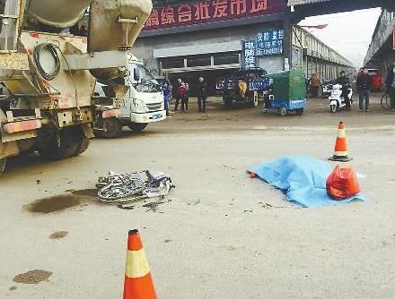 老人的遺體被藍(lán)色塑料布蓋著,一邊還有一個紅色塑料袋,里面放著老人剛從集市買的棉衣和棉褲,事發(fā)現(xiàn)場附近立著兩個警示栓,攪拌車停在遺體旁邊,司機在車內(nèi)。此時,在不遠(yuǎn)處集市上賣水果的,老人的小兒子已經(jīng)趕到現(xiàn)場,他情緒悲痛,正在配合民警做調(diào)查。