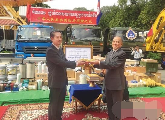 近日,由中聯(lián)重科參與供貨的中國(guó)政府援助柬埔寨國(guó)王工作隊(duì)物資項(xiàng)目交接儀式在柬埔寨首度金邊王宮舉行。諾羅敦·西哈莫尼國(guó)王主持交接儀式,柬副首相兼王宮事務(wù)部大臣貢桑奧、中國(guó)駐柬大使熊波等官員出席活動(dòng)。