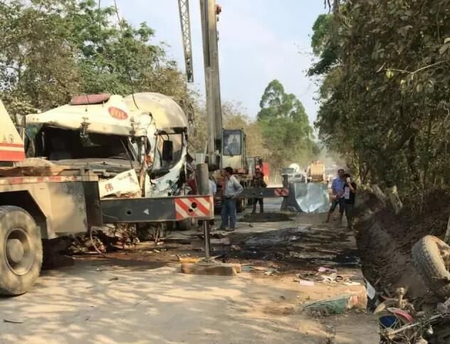 一輛混凝土車撞上一名騎摩托車的男子,摩托車被壓扁粉碎,駕駛員頭部被壓,當場不幸身亡?;炷淋嚿⒓軋髲U,司機受輕傷。