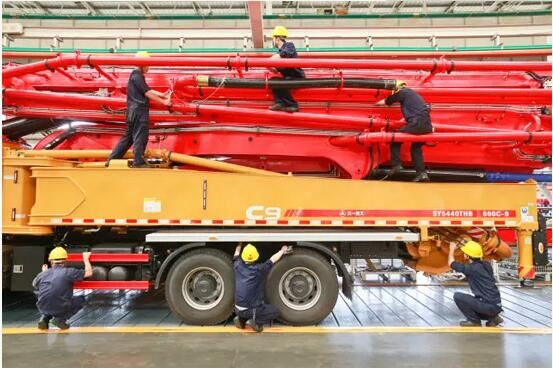 由于泵車生產(chǎn)線是高度柔性化的生產(chǎn),產(chǎn)品型號(hào)有37米、49米、56米、66米、86米等幾十種型號(hào),還要滿足客戶的各種定制化需求,這就要求工人們?cè)谑炀氄莆彰恳豢町a(chǎn)品的標(biāo)準(zhǔn)化作業(yè)同時(shí),牢記每一顆螺母、每一根膠管、每一個(gè)閥塊的正確安裝方法,對(duì)泵車制造工藝做到了然于心,用最快的速度保證每一臺(tái)泵車的順利下線。