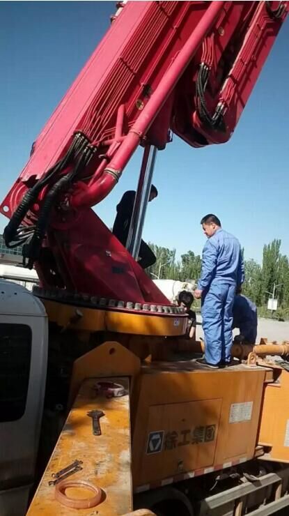 3、泵車(chē)就位后,應(yīng)支起支腿并保持機(jī)身的水平和穩(wěn)定。當(dāng)用布料桿送料時(shí),機(jī)身傾斜度不得大于3°。