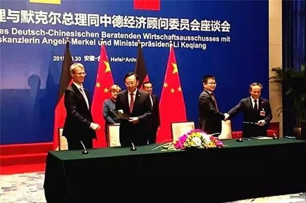 在李克強、默克爾總理的見證下,徐工和SAP公司簽訂了戰(zhàn)略合作項目協(xié)議。(照片右一為徐工董事長王民)