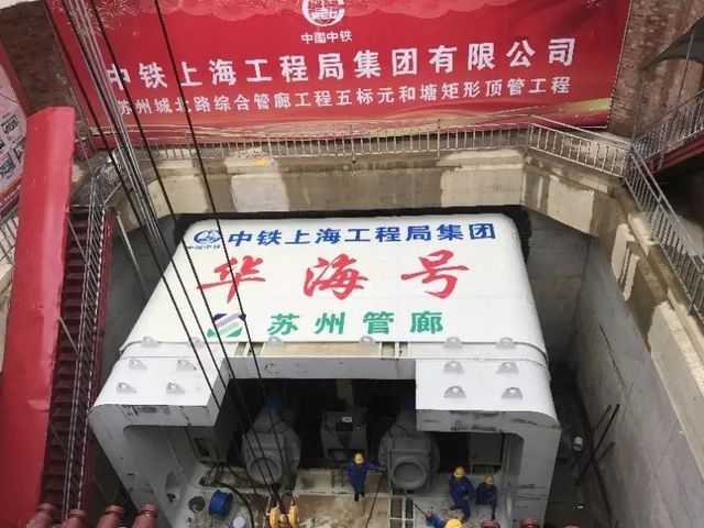 11月18日,隨著中國中鐵上海工程局“華海號”頂管機的最后一頂,我國目前管廊施工領域頂距最長、斷面最大的矩形頂管工程——江蘇蘇州市城北路綜合管廊元和塘頂管工程順利貫通,該頂管工程被業(yè)內(nèi)譽為“中國第一頂”。