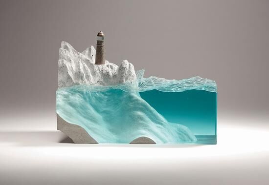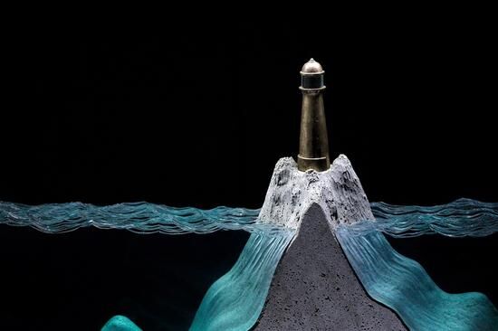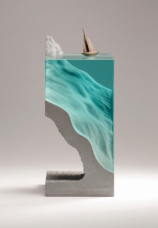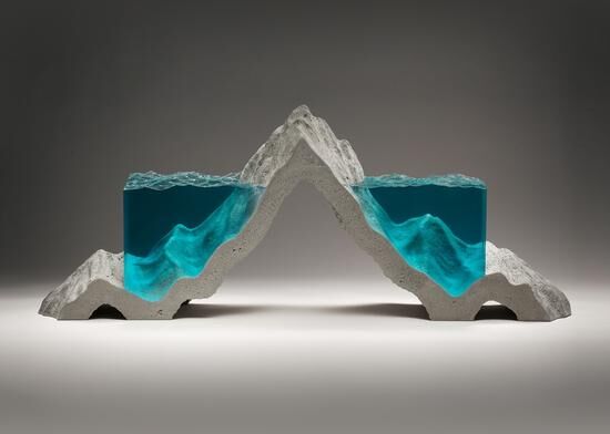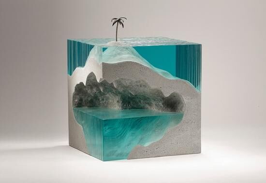 水、陸地、巖石被這位來自悉尼的雕塑家Ben Young用玻璃和混凝土打磨得惟妙惟肖,逼真同時很藝術(shù)。Ben Young出生在新西蘭,從事玻璃雕塑制作已有10多年的時間。他的作品看上去嚴絲合縫,精確細膩,盡管是混凝土這種粗糙的材料,也被打磨得如奶油般光滑。