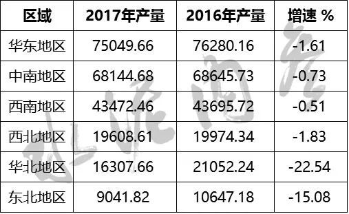 各區(qū)域水泥產量數(shù)據(jù)(單位:萬噸)