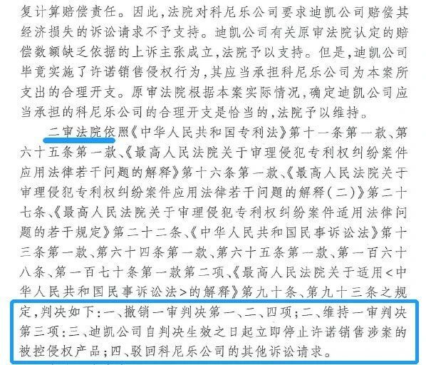 高院認為,迪凱公司“從事了被訴侵權產(chǎn)品的制造、銷售和許諾銷售行為”。