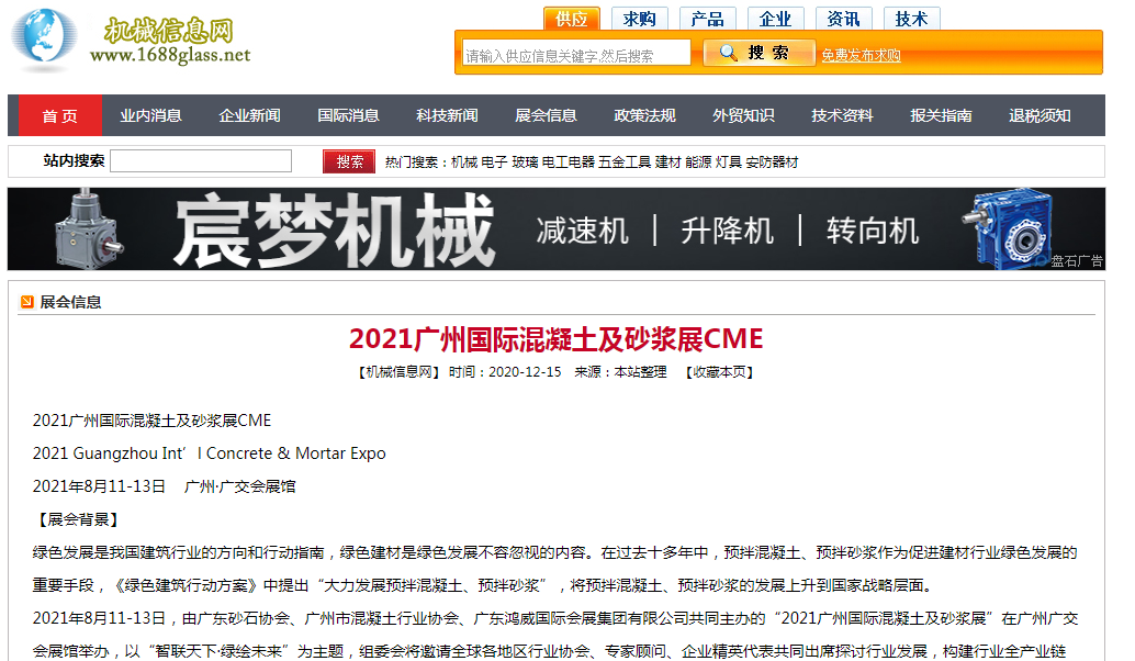 廣州國際混凝土及砂漿展已于2020年成功舉辦,自項(xiàng)目立項(xiàng)以來,得到多方媒體的關(guān)注和報(bào)道。據(jù)統(tǒng)計(jì),2020-2021年度,騰訊視頻、愛奇藝、土豆網(wǎng)、優(yōu)酷視頻等電視媒體,網(wǎng)易房產(chǎn)、新浪家居、廣州搜狐焦點(diǎn)、騰訊網(wǎng)、中國數(shù)字經(jīng)濟(jì)網(wǎng)、央廣網(wǎng)、360慧聰網(wǎng)、南方網(wǎng)、北方網(wǎng)、羊城晚報(bào)、廣州日?qǐng)?bào)、新浪網(wǎng)、新京報(bào)、21世紀(jì)經(jīng)濟(jì)報(bào)道、東方網(wǎng)、光明網(wǎng)、中國商業(yè)新聞網(wǎng)、焦點(diǎn)中國網(wǎng)等主流媒體,抖音、快手、西瓜視頻、今日頭條、百家號(hào)、火山小視頻等視頻媒體和廣東建設(shè)報(bào)、中國路面機(jī)械網(wǎng)、新型砂漿網(wǎng)、世界機(jī)械網(wǎng)、工程機(jī)械在線、攪拌設(shè)備網(wǎng)、中國保溫砂漿網(wǎng)等行業(yè)媒體,以及《混凝土雜志》、《砼時(shí)代》等雜志媒體均對(duì)展會(huì)給予高度關(guān)注,積極宣傳展會(huì)動(dòng)態(tài)與資訊。感謝各行業(yè)媒體、主流媒體、視頻媒體、雜志的大力支持與高度認(rèn)可。
