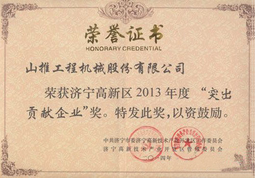 山推全年在區(qū)內的科技創(chuàng)新與技術發(fā)展方面起到了輻射帶動作用,財政貢獻顯著,為全區(qū)經(jīng)濟社會又好又快發(fā)展做出了突出貢獻。根據(jù)《濟寧高新區(qū)管委會關于鼓勵企業(yè)創(chuàng)新發(fā)展的若干規(guī)定》(濟高新管發(fā)【2012】32號)文件精神,公司被授予“突出貢獻企業(yè)”與“專利特別獎”,同時獲得一項科技進步獎與行業(yè)標準獎勵,研究總院副院長周士建博士榮獲“551人才”稱號。