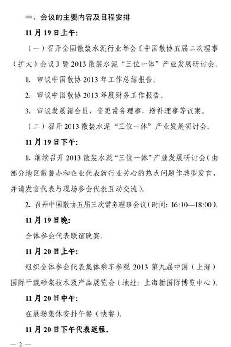摘要:關于召開全國散裝水泥行業(yè)年會暨2013散裝水泥“三位一體”產(chǎn)業(yè)發(fā)展研討會的通知