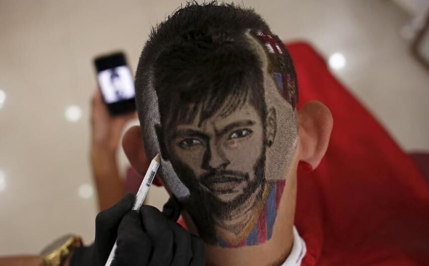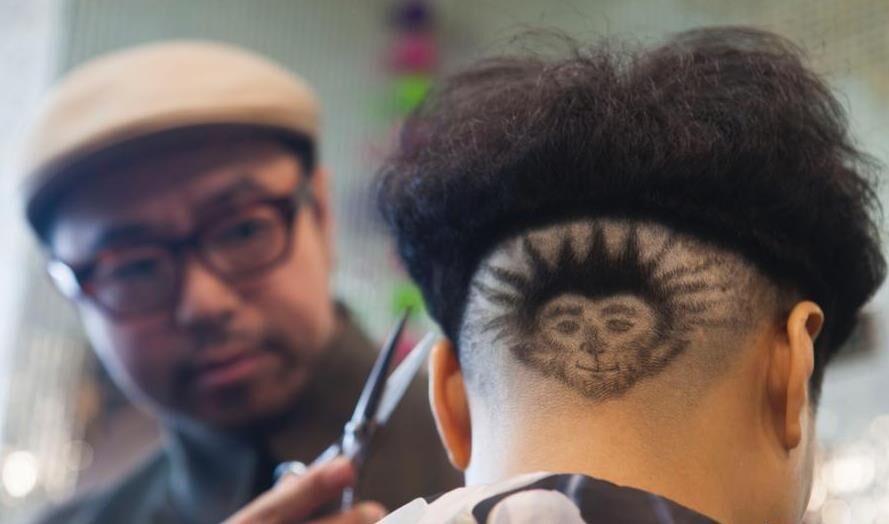 27歲的發(fā)型師Nariko在一名男性顧客的頭上創(chuàng)作了內(nèi)馬爾肖像發(fā)型,惟妙惟肖引圍觀(guān)。