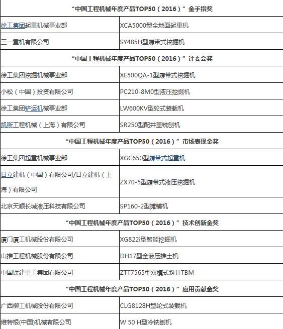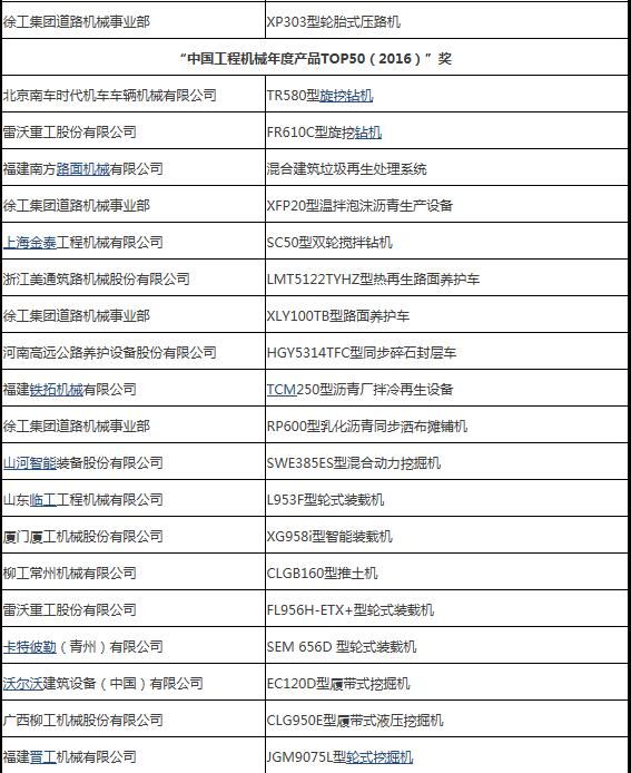 2016年3月31日,“2016工程機械產(chǎn)品發(fā)展(北京)論壇暨中國工程機械年度產(chǎn)品TOP50頒獎典禮”在北京隆重舉行。來自中國工程機械工業(yè)協(xié)會及下屬分支機構(gòu)、國家工程機械質(zhì)量監(jiān)督檢驗中心、相關(guān)行業(yè)協(xié)會以及工程機械制造企業(yè)、施工企業(yè)、科研機構(gòu)、高校、新聞媒體的200余位嘉賓參加了這次年度盛會。