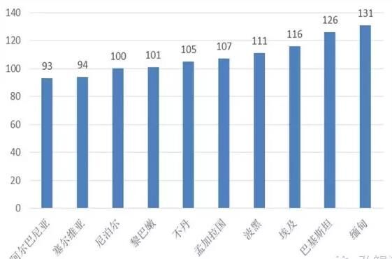 圖2“一帶一路”地區(qū)經(jīng)濟總量后10名的國家