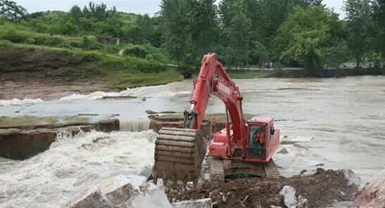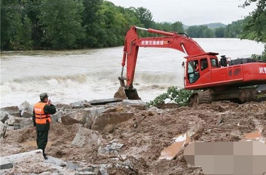 裝載機(jī)和挖掘機(jī)不停挖土并傾倒在河床上,山頂滑下來的巨石被填筑在路基邊坡,加固道路,保障安全,推土機(jī)在后方盡量推平直到可以供車輛行人行走,這是一幅抗洪救災(zāi)現(xiàn)場最常見的畫面,通力合作的除了武警官兵和救援人員們,就屬這些工程機(jī)械設(shè)備最為搶眼了。