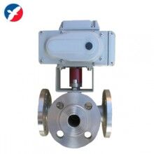 電動法蘭三通球閥采用JW系列回轉(zhuǎn)式角行程電動執(zhí)行機構(gòu),以AC220V、AC380V或DC24V電源電壓作動力,接受工業(yè)自動化儀表控制系統(tǒng)輸入的(4-20mA、或1-5VDC)電流信號或電壓信號,即可控制運轉(zhuǎn),實現(xiàn)對工藝介質(zhì)的比例調(diào)節(jié)或二位切換控制。三通球閥是綜合國內(nèi)外先進技術(shù)而開發(fā)的新型三通切換型調(diào)節(jié)閥。標(biāo)準(zhǔn)球芯有L型三通雙口孔種,改變球芯與管道的相對角度,可以對三支管道流體實現(xiàn)不同的組合控制;T型孔道可起配比作用,適用于液休、氣體、蒸汽等介質(zhì)的配比調(diào)節(jié)與控制。
