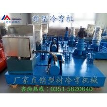 將工字鋼放在冷彎機上,與減速帶動的滾輪接觸后,將壓緊手柄進給鎖緊,啟動電機油泵組,由電動油泵輸出的高壓溢流閥(可調(diào)整所有壓力),進入集成塊到電纜閥,有電液閥和動點開關(guān)(點進,點退)控制油缸工作,工作油缸推進,將工字鋼與三個支撐游輪壓緊并為發(fā)生彎曲變形是時開始計算,油缸推進的長度進程為10mm-15mm,開主電機帶動型鋼工作,反復(fù)操作,達到所需為止。