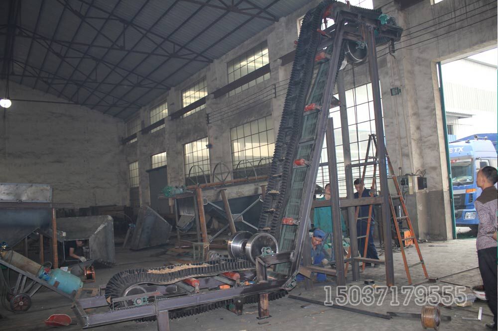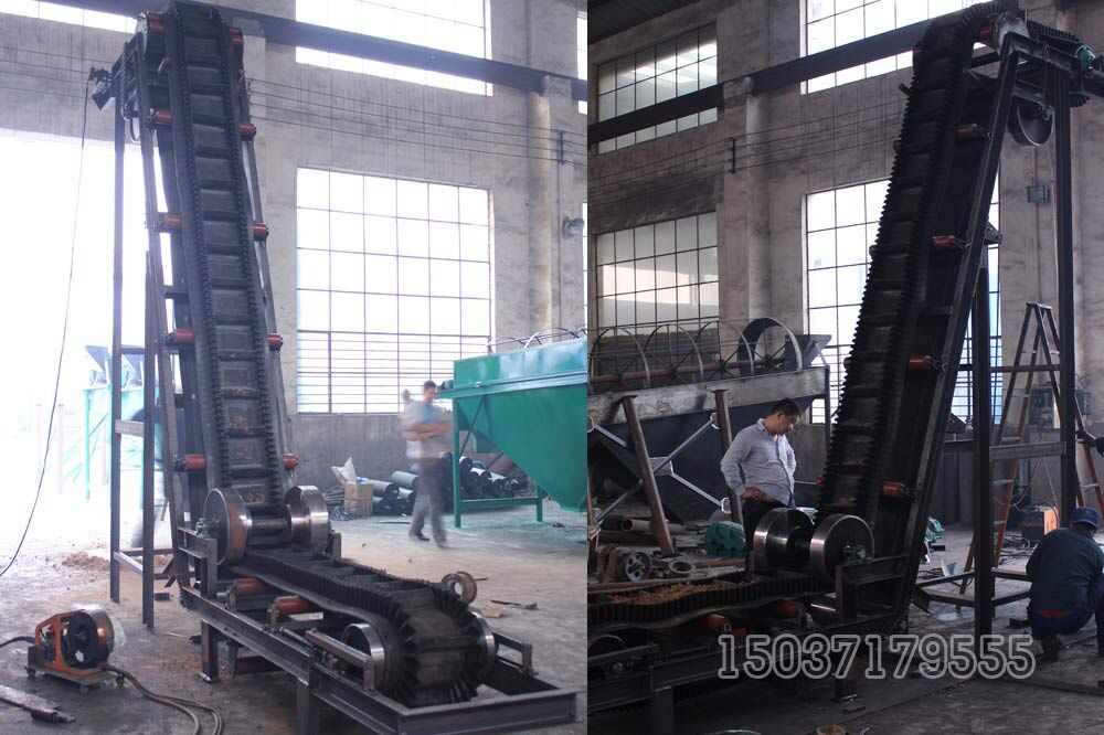 大傾角皮帶輸送機(jī)具有通用帶式輸送機(jī)結(jié)構(gòu)簡單,運(yùn)行可靠,維修方便等優(yōu)點(diǎn),并具有大傾角輸送、結(jié)構(gòu)緊湊、占地少等特點(diǎn),因而是大傾角輸送和垂直提升物料的理想設(shè)備。大傾角皮帶輸送機(jī)是有機(jī)肥生產(chǎn)的主要設(shè)備,在有機(jī)肥的生產(chǎn)中原料以及成品的垂直提升就需要大傾角皮帶輸送機(jī)來完成。