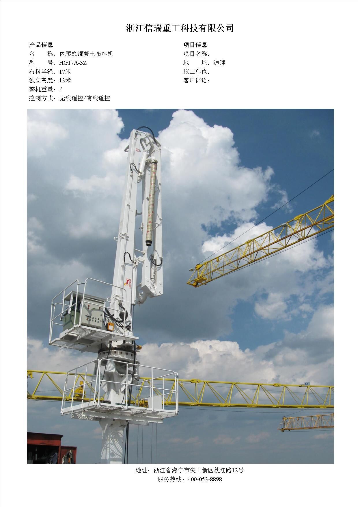 歸屬行業(yè):信瑞重工HG33A-4R內爬式混凝土布料機