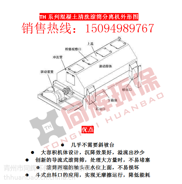 該裝置機(jī)械結(jié)構(gòu)簡(jiǎn)單,環(huán)保效益顯著:分離出砂石表面光潔,砂子含灰≤1%,含水≤3-5%;洗車(chē)水循環(huán)使用,污水達(dá)到零的排放;設(shè)備耐磨,操作簡(jiǎn)單,便于清理檢修。