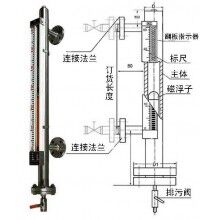 液位計(jì)根據(jù)浮力原理,浮子在測量管內(nèi)隨液位的升降而上下移動,浮子內(nèi)的永久磁鋼通過磁耦合作用,驅(qū)動紅、白色翻柱翻轉(zhuǎn)180’液位上升時,翻柱由白色轉(zhuǎn)為紅色,下降時,翻柱由紅色轉(zhuǎn)為白色,從而實(shí)現(xiàn)液位的指示。