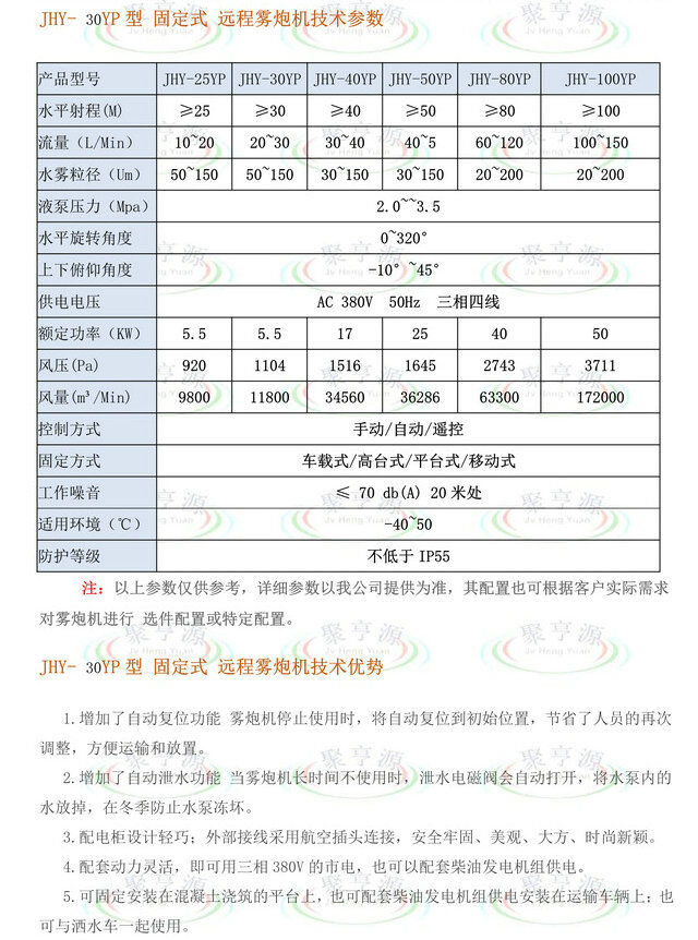 聚亨源JHY-□□YP系列遠程霧炮機