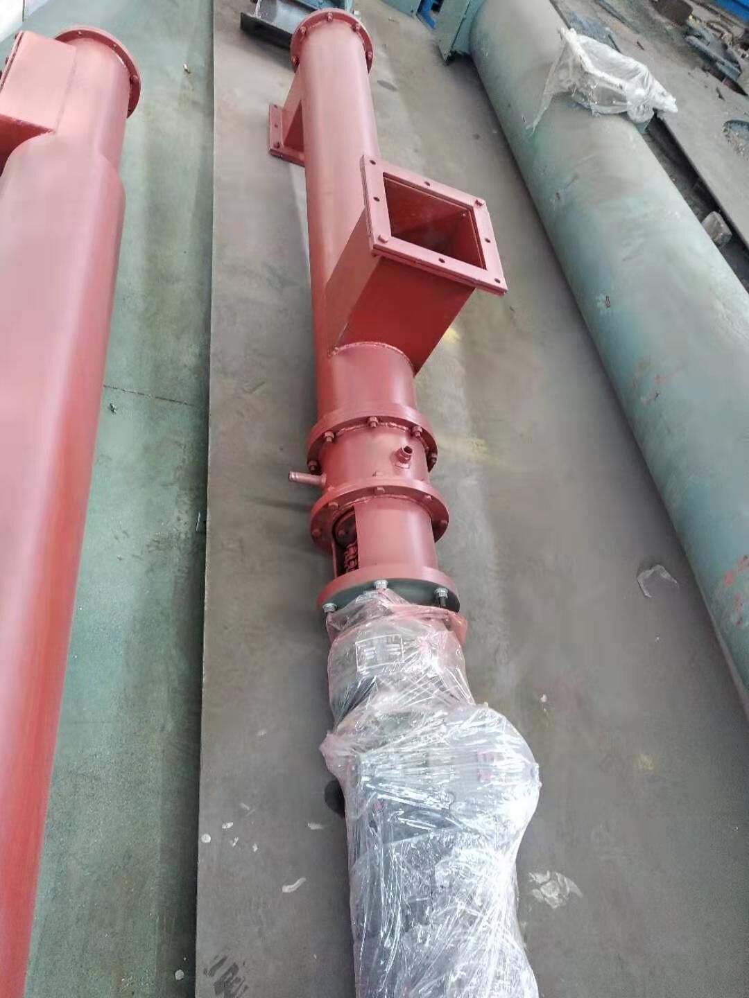 螺旋輸送機通常由螺旋輸送機本體,進出裝置,驅(qū)動裝置三大部分組成。 螺旋輸送機本體由頭節(jié),中間節(jié),尾節(jié)三部分組成。