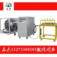 本實施例設計的二氧化碳爆破設備基本同于實施例,區(qū)別之處在于兩根膨脹管充裝頭與尾部封頭通過連接環(huán)用螺栓連接起來,同時確保兩根膨脹管筒體的泄能孔方向指示箭頭方向一致。用線將上一根二氧化碳爆破設備封蓋上的密封絕緣接線柱與下一根二氧化碳爆破設備充裝頭上的密封絕緣接線柱連接,用線將上一根膨脹器封蓋上的接線柱與下一根膨脹器充裝頭上的接線柱連接構(gòu)成通路。用接線將下一根膨脹器封蓋上的接線柱與密封絕緣接線柱連接構(gòu)成通路,將上一根充裝頭上的密封絕緣接線柱和接線柱接在電源上,按下電源開關(guān)即可完成爆破。