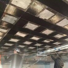 ·粘貼碳纖維片材,按設(shè)計要求裁剪碳纖維布。根據(jù)比例稱取所需膠量,進行充分混合。將混合好的浸漬膠均勻涂抹于所耍粘貼的部位并粘貼碳纖維布。在搭接、拐角處可適當(dāng)多涂些膠。用光滑的滾筒順纖堆方向多次滾壓.?dāng)D除氣泡使JGN802浸漬膠充分浸透碳纖維布.滾壓時不得損傷碳纖維布.多層粘貼重復(fù)上述步驟.在最后一層碳纖維布的表面均勻涂抹一層浸漬膠。