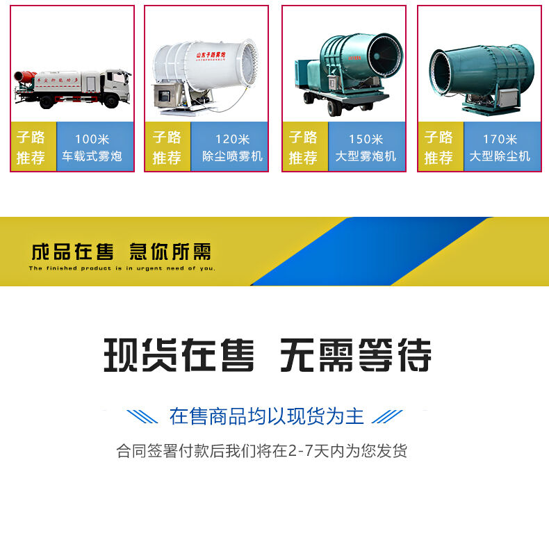 2.移動式霧炮機(jī)射程遠(yuǎn)30米-150米射程的都有,除塵的覆蓋面積廣