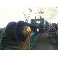 擋邊和隔板的底部和基帶是工廠按國(guó)際標(biāo)準(zhǔn)經(jīng)一次硫化加二次硫化結(jié)合而成。擋邊和隔板的高度可以達(dá)10-400mm,在裙帶中間,我廠增加了高強(qiáng)力抗拉伸織物層,加強(qiáng)了裙邊的抗撕裂強(qiáng)度,大大延長(zhǎng)了裙邊的使用壽命