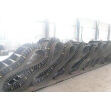 我們可以生產(chǎn)普通一般的大傾角裙邊輸送帶,是由基帶,擋邊,隔板三部分組成,三者共同作用,幫助物料提升到指定高度?;鶐?,擋邊,隔板是通過二次硫化的方式硫化到一起的,十分的牢固。另外為了能夠在物料大批量運輸下隔板的穩(wěn)固,我們還在擋邊與隔板中間加入穩(wěn)固螺絲,這個我們是不收取任何費用的。