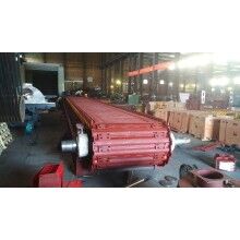 2)由于驅(qū)動部分為懸掛式,從而減少了產(chǎn)生的安裝誤差,大幅度提高了傳動系統(tǒng)的使用壽命。另外本設(shè)備也可根據(jù)用戶要求采用液壓馬達(dá)驅(qū)動的傳動方式。這種傳動方式可實現(xiàn)物料輸送速度的平穩(wěn)改變。