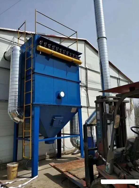 單機脈沖袋式除塵器具有操作簡單、清灰連續(xù)、阻力穩(wěn)定、過濾速度高、內(nèi)部無運動機件、設(shè)計簡單等特點,是一種高效能的布袋除塵器。脈沖布袋除塵器是一種下進風的逆噴布袋除塵器。除塵器布袋利用壓縮空氣進行周期性噴吹,噴吹周期為30~60秒,噴吹時間0.1~0.2秒。