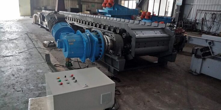 張緊裝置既是鏈板組件的張緊組件,又是改向軸組件的支承組件。它主要由座架及滑動支承座組成,后部設能帶動滑動支承座前后移動的調(diào)節(jié)桿,可對滑動支承座前后調(diào)節(jié),以保持鏈軌合適的張緊度。