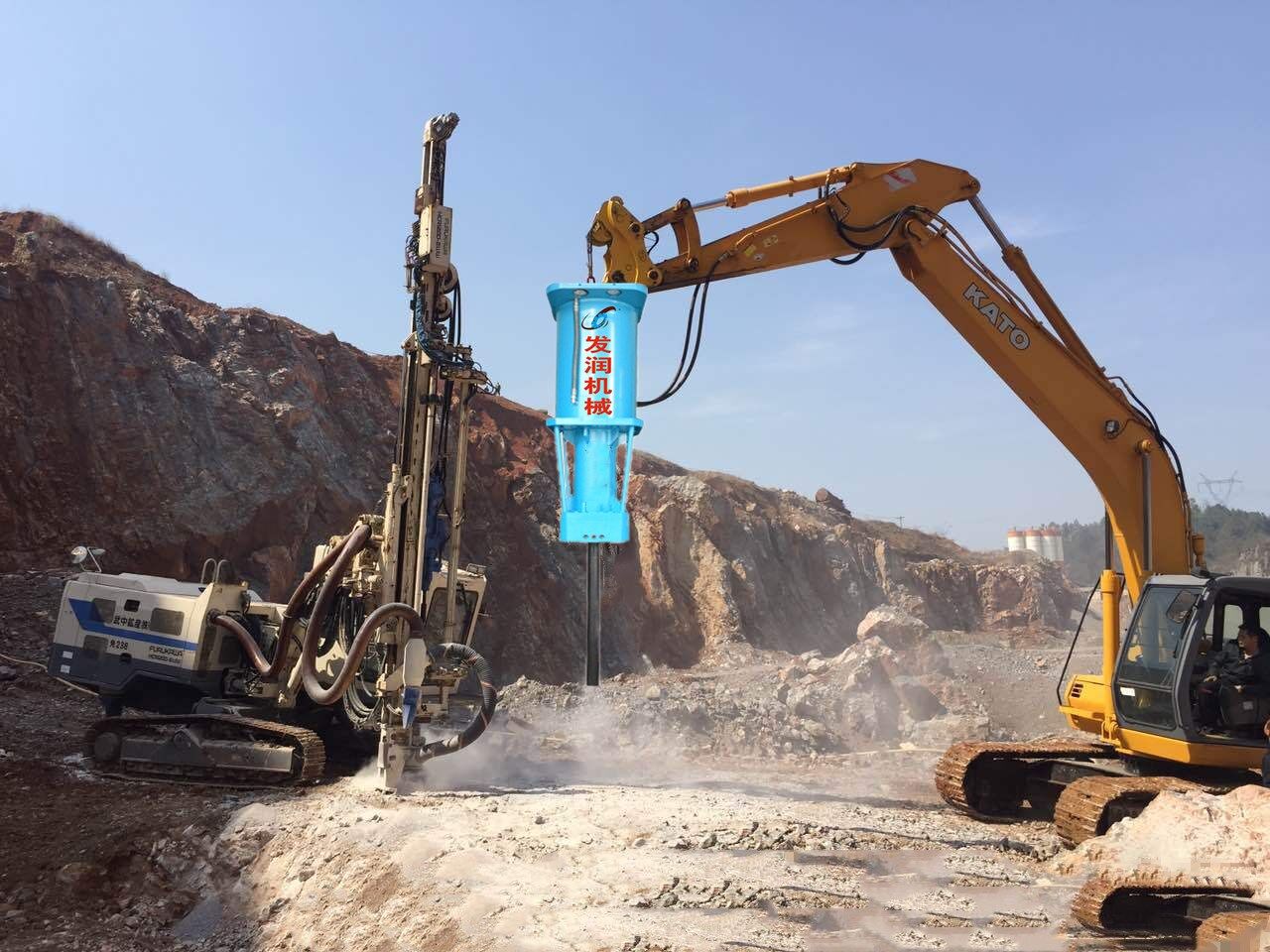 大型破碎巖石設(shè)備替代了爆破和傳統(tǒng)的破碎方法。它在破碎巖石和混凝土?xí)r不會(huì)產(chǎn)生壓力波,也沒(méi)有振動(dòng)、噪音和粉塵,在采石場(chǎng)的荒料開采也擁有很大的技術(shù)優(yōu)勢(shì)。
