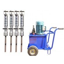 發(fā)潤(rùn)牌劈裂機(jī)的速度是破碎錘的速度的7~8倍,大大縮短了工期。這個(gè)機(jī)器使用很簡(jiǎn)單,一個(gè)工人就能完成全部操作,其結(jié)構(gòu)就是一個(gè)高壓泵站加上輸油管連接的劈裂槍,使用的時(shí)候先在需要分裂的巖石上打一個(gè)50到100公分深的孔,然后插入劈裂槍,啟動(dòng)機(jī)器,大約30到60秒,石塊即被裂開(kāi)一條100公分左右長(zhǎng)度,1.5公分寬度的裂縫。機(jī)器原理就是利用劈裂槍中間的楔塊伸縮,推動(dòng)包圍楔塊的兩片劈塊往周圍張開(kāi),從而由內(nèi)部脹開(kāi)巖石。