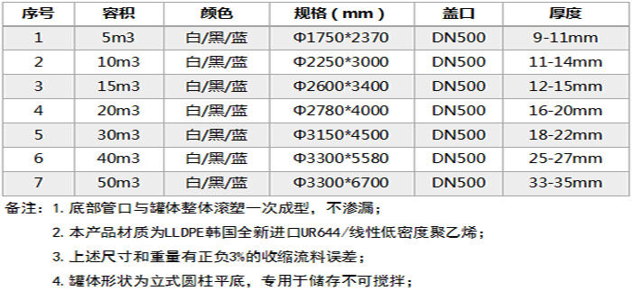 特點:所用材質(zhì)為韓國進口聚乙烯(PE)滾塑原料,儲罐一次成型,內(nèi)外光滑,具有良好的衛(wèi)生性與抗紫外線能力,耐酸堿、耐腐蝕、易清洗、不易老化。