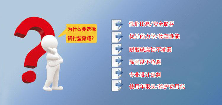 鋼襯塑儲罐由于其獨特的滾塑工藝、產(chǎn)品整體結構和材料優(yōu)異性能,具有整體性好、強度高、無焊縫、不滲漏、抗沖擊、韌性好、重量輕、壽命長、耐酸堿、耐有機溶媒、符合衛(wèi)生標準、價格低廉、規(guī)格品種多等特點。尤其耐腐蝕、長壽命和大規(guī)格品種有非常大的優(yōu)勢,是貯存和運輸各類化工液體半固體的理想產(chǎn)品。其性能大大超過了傳統(tǒng)的玻璃鋼、陶瓷、橡膠、焊接塑料等材料制作的防腐儲罐。