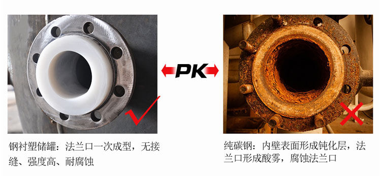 產(chǎn)品具有無焊接縫、不滲漏、無毒性、抗老化、抗沖擊、耐腐蝕、壽命長、符合衛(wèi)生標準等優(yōu)點。它彌補了全塑滾塑儲罐剛性強度差,不耐壓,耐溫差的缺點。產(chǎn)品內(nèi)襯面平整、光滑、堅固,與傳統(tǒng)的鋼襯塑料板儲槽、鋼襯橡膠儲罐、鋼襯玻璃鋼貯槽相比,具有更良好的耐腐蝕、不滲漏、不剝離、耐磨損、可耐一定壓力、可耐較高溫度、壽命更長等優(yōu)點,是儲存腐蝕液體的理想容器,也是一種極為優(yōu)異的耐腐蝕儲罐。