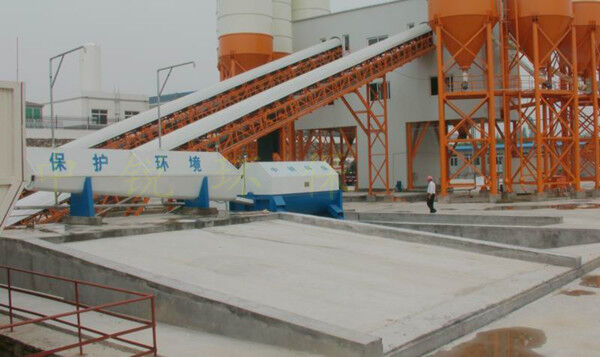 該系統(tǒng)主要由:攪拌車加水清洗裝置,溜槽輸送裝置,砂石漿水分離裝置,和泥漿水后處理裝置組成?;炷凛斔驮O(shè)備清洗后,將殘余混凝土排入溜槽中,在高壓水流沖擊下,經(jīng)溜槽進(jìn)入砂石分離機(jī),在不斷旋轉(zhuǎn)的分離機(jī)作用下,對(duì)混凝土進(jìn)行充分的清洗,同時(shí)將砂、石進(jìn)行分離,分離后的砂、石在導(dǎo)料葉片的作用下背向流動(dòng),再通過提升式出料口排出分離機(jī),分別堆放。清洗后的漿水從分離機(jī)的底部排出進(jìn)入沉淀池逐級(jí)沉淀后循環(huán)使用或進(jìn)入攪拌池回收利用。進(jìn)入攪拌池(一般情況2個(gè)攪拌池)的漿水為了防止沉淀凝固,需通過攪拌器的作用,攪拌器的工作為間歇式。分離出水泥漿在連續(xù)的攪拌器作用下,再通過高壓污水泵輸送到攪拌樓中待生產(chǎn)計(jì)量再利用。整個(gè)控制系統(tǒng)設(shè)有手動(dòng)和自動(dòng)控制,方便控制設(shè)置,整個(gè)系統(tǒng)運(yùn)行可靠,故障率低,維護(hù)量少等特點(diǎn)。