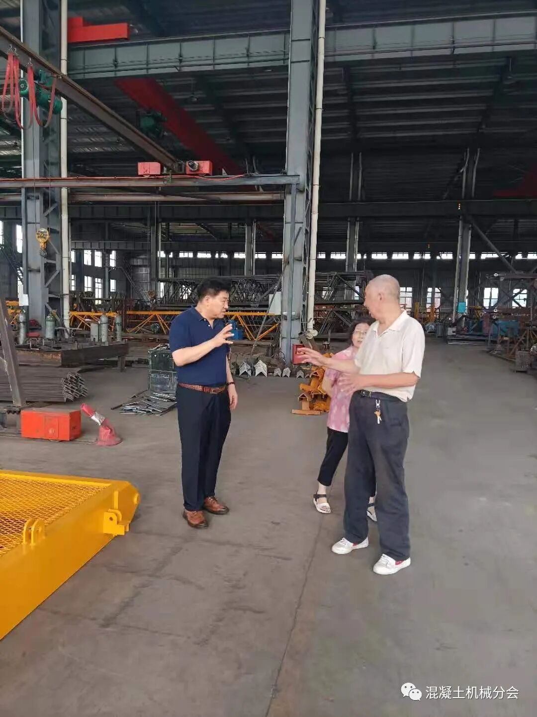 張工講到,周總外出學(xué)習(xí)趕不回來(lái),特別交代自己和林總接待好符會(huì)長(zhǎng)一行。在交流的過(guò)程中,張工也提到因?yàn)樾袠I(yè)現(xiàn)在經(jīng)營(yíng)比較困難,公司基本停止了混凝土攪拌設(shè)備的生產(chǎn),只有部分塔式起重機(jī)還在經(jīng)營(yíng),也陪同會(huì)長(zhǎng)在車間參觀了一圈,對(duì)實(shí)際的生產(chǎn)情況進(jìn)行了解。