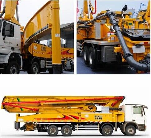中聯(lián)重科此次參展泵車包括一臺三橋56米碳纖維臂架泵車和一臺60米7節(jié)臂橫展臂架泵車。